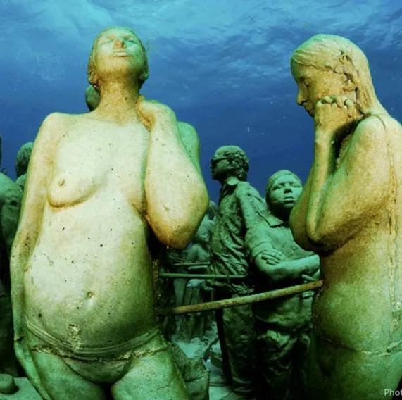 you want to enjoy art underwater. Discover the underwater museum in Isla Mujeres and a beautiful coral reef! We take you to immerse in the waters surrounding our beautiful Isla Mujeres, where you will dive around more than 450 life-size sculptures which are part of the monumental Museum of Contemporary Art, called MUSA (Underwater Art Museum) formed in 2009.